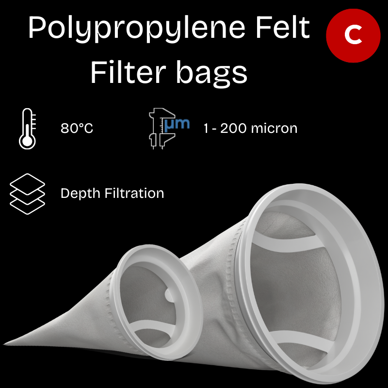 Polypropylene felt filter bags combine excellent chemical resistance with high dirt-holding capacity. The depth structure of the Polypropylene felt filter bags traps particles throughout the media rather than just on the surface, allowing efficient removal of both coarse and fine contaminants. Lightweight, cost-effective, and suitable for a wide pH range, polypropylene felt bags provide reliable, versatile performance in a broad range of liquid applications.