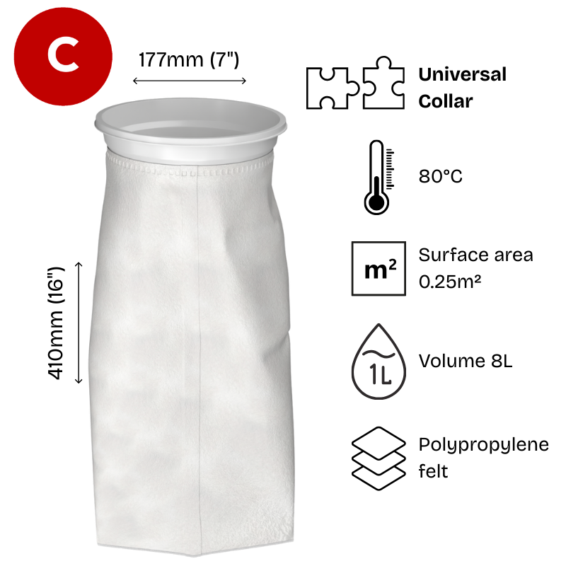 - Cold Wort Filtration: 25 - 50 micron (reduce fine solids before fermentation)